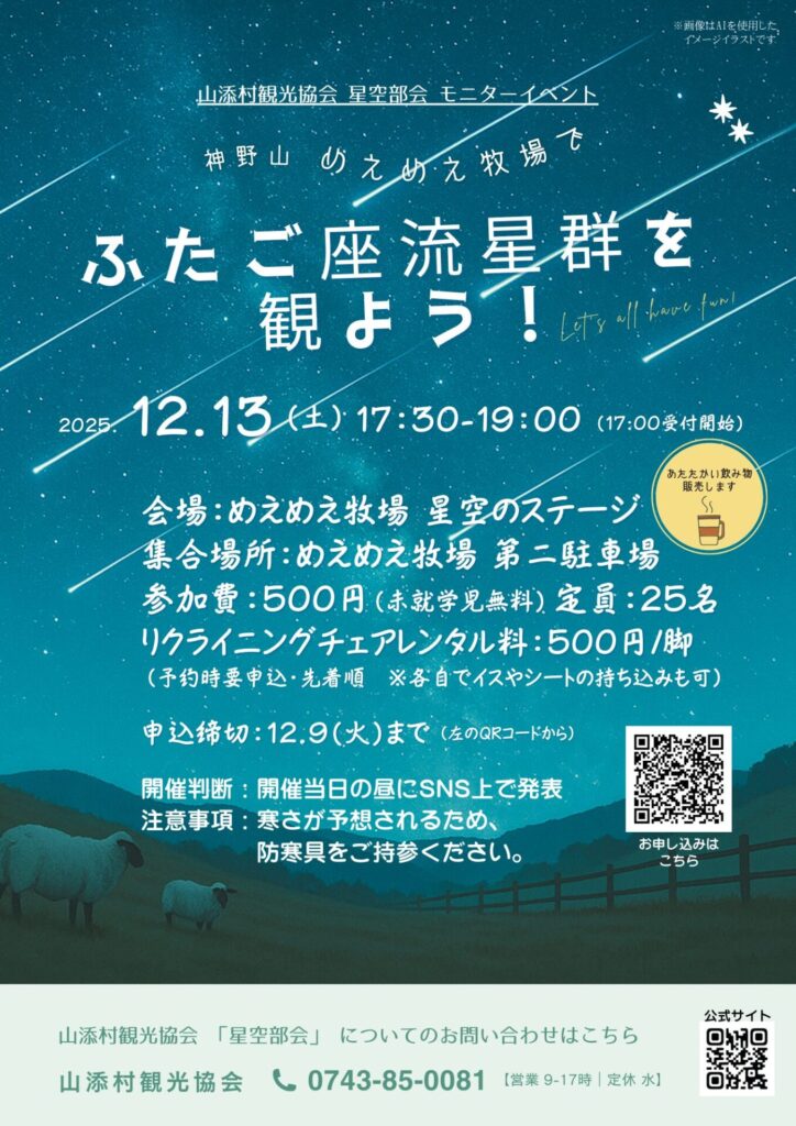 『ふたご座流星群モニターツアー』のお知らせ